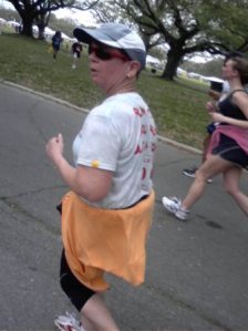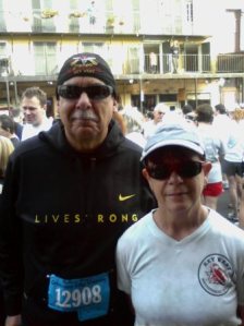 Got up yesterday morning feeling like a cheetah; ready to run the race and WIN!!!   Avoiding mirrors – which do not always accurately reflect the person or animal you think you are (and having no need to be reminded of being a pudgy white-haired 50 something) – I lithely made my way to wake up the young male cheetah and my mate the mother cheetah.  Ducking obscenities and thrown pillows from both, I slunk down and lapped up some water and nourishment before heading out to the plains.  We 3 cheetahs  ambled through the 22,000 strong herd of Whodats, unnoticed and unacknowledged for our graceful speed.  At the sound of the gun our hearts leapt and we were off with everyone unaware that they were about to be consumed by the Pierce cheetahs.